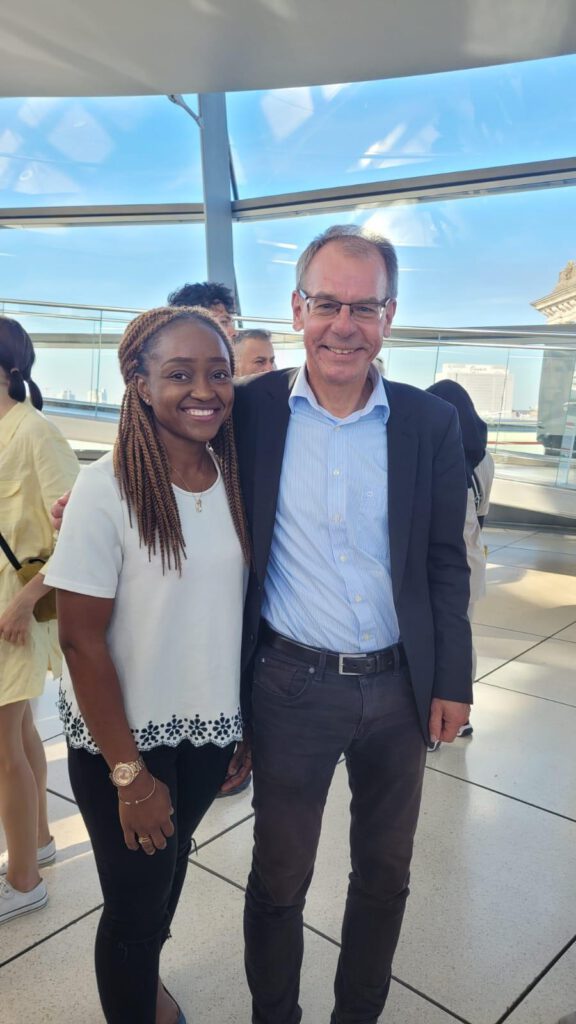 "She for Democracy" un programme de 7 mois organisé par la ville de Dortmund pour initier, encourager, motiver la gente féminine à s'intéresser à la politique. Aujourd'hui je me sens obligé de m'y intéresser, car quand on prend l'engagement de vouloir contribuer aux changements, aux améliorations, on doit faire tout pour se retrouver de l'autre côté de la table. Ne plus être du côté de celui qui subit, mais plutôt du côté de celui qui décide et avoir la capacité d'influencer et de faire changer les choses. Défendre les droits des étrangers, de ma communauté, améliorer leurs conditions de vie ici à l'étranger fait dorénavant partir d'une de mes missions qui me tient à cœur!