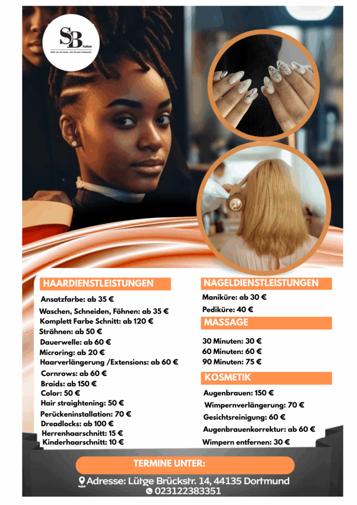 SB Salon, un institut de beauté afro-européen situé au cœur de Dortmund, avec une équipe diversifiée.